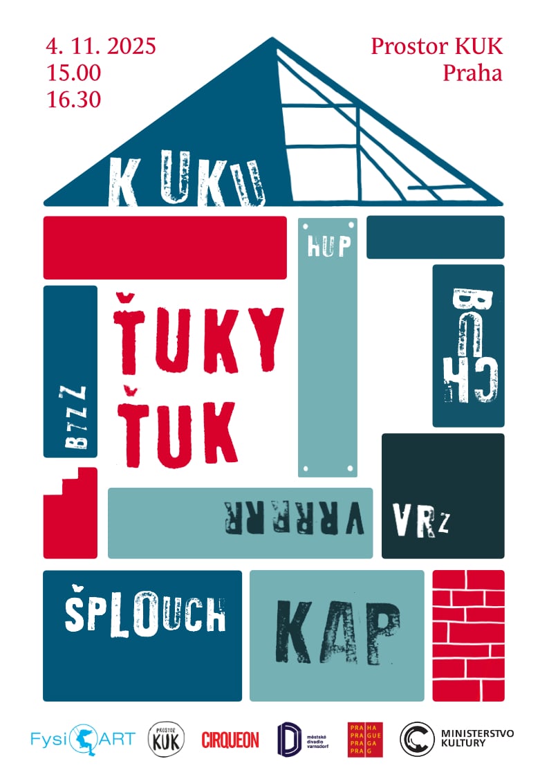 ŤukyŤuk je jazykově bezbariérové představení v žánru pohybového divadla s prvky nového cirkusu a je vhodné pro děti od 1 roku. Premiéra 2.11. v 15h (Městské divadlo Varnsdorf) a 4.11. v 15h a 16:30 (Prostor KUK) 2025.