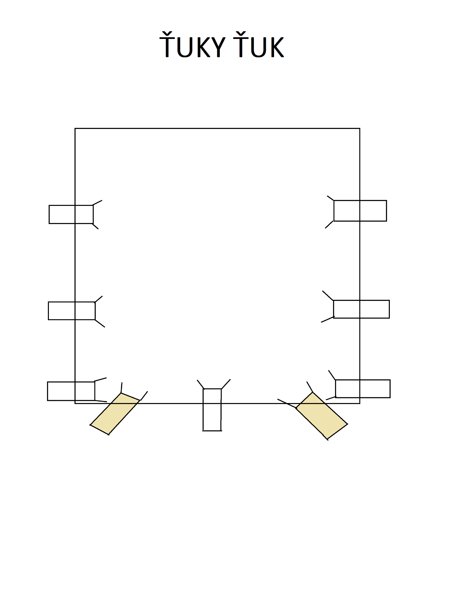 Autorská inscenace pro úplně nejmenší děti si hraje s komickými představami, kdo či co to ťuká na dveře a na úplně cokoli okolo nás. Odkud je slyšíme? Shora, zdola, ze zdi, anebo je někdo venku za oknem či pod námi v přízemí? A současně to není ledajaké ťukání, ale za každým se skrývá i kdyby maličký příběh, nebo postavy jako máma či táta, ale také třeba vítr v průvanu, zbloudilý zvuk vrtačky i odražený míček. Do kterých směrů a situací nás všechny zvuky zavedou? A jaká hudba z nich může vzniknout? V představení ŤukyŤuk se dvojice kluků (performerů) nechává překvapovat, protože každé zákoutí v rekonstruovaném domě zní jinak.